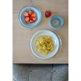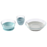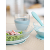 Beaba Glass Meal Set is made from a healthy and hygienic material which is scratch-resistant, odourless and stain-free and is designed for young children. The set includes a glass plate and glass bowl with a supple suction base to avoid mishaps by sticking to the surface and a glass beaker with its supple sleeve cover. Made from hard wearing tempered glass in partnership with DURALEX it is suitable from first meals to 36 months+