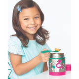 This colorful stainless steel container keeps kid-sized portions warm or cold. Store the spork, or most utensils, in the handy built-in holder so your little one is ready for meals on-the-go.