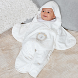 Perfect companion at home and on the go: the natural snuggle wrap with lion application is ready for use from birth on